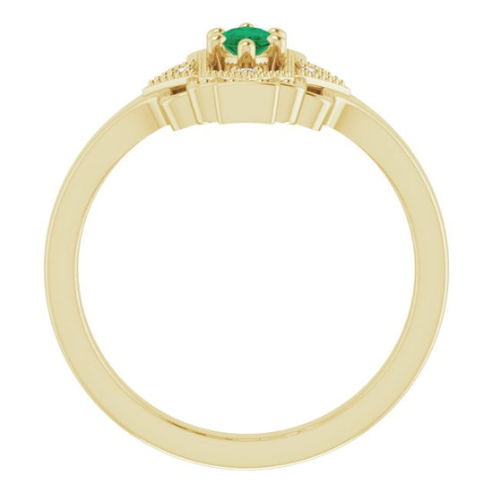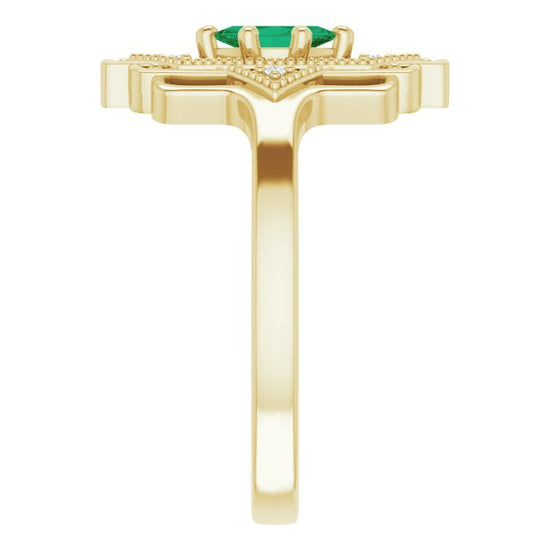 This vintage-inspired genuine emerald ring screams Parisian chic show stopper. This is a custom - made to order item - with an emerald shaped main stone and 8 lab-grown diamonds.